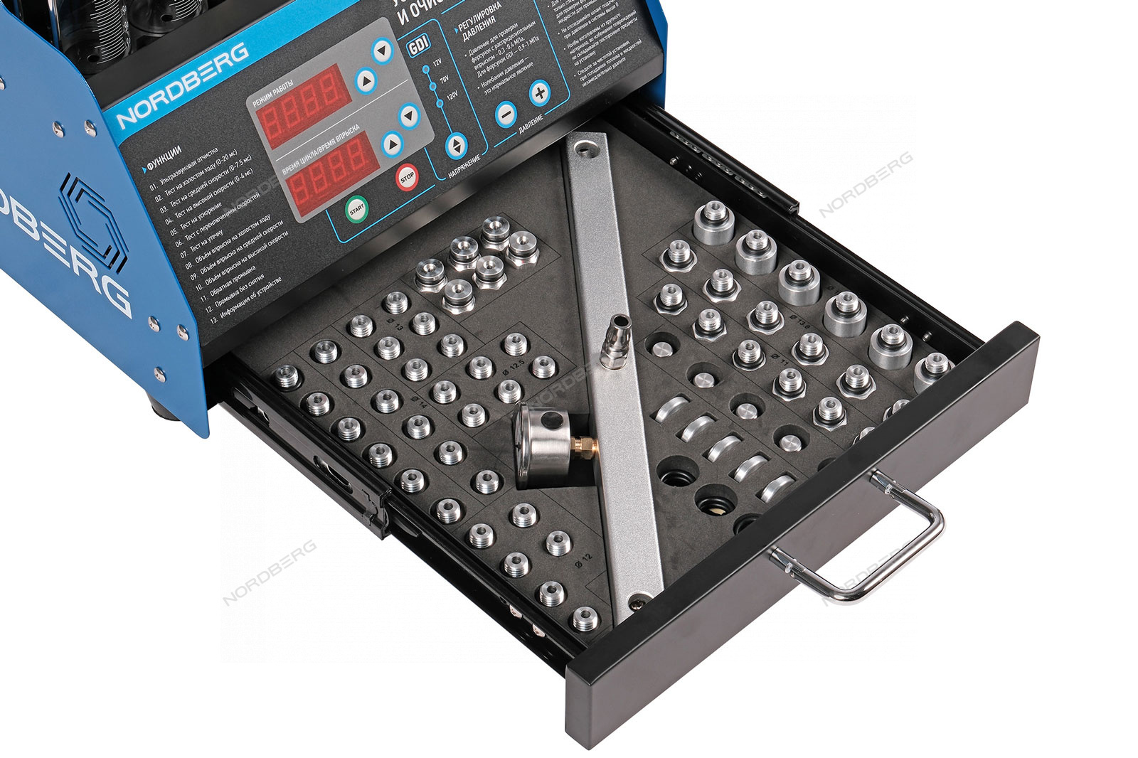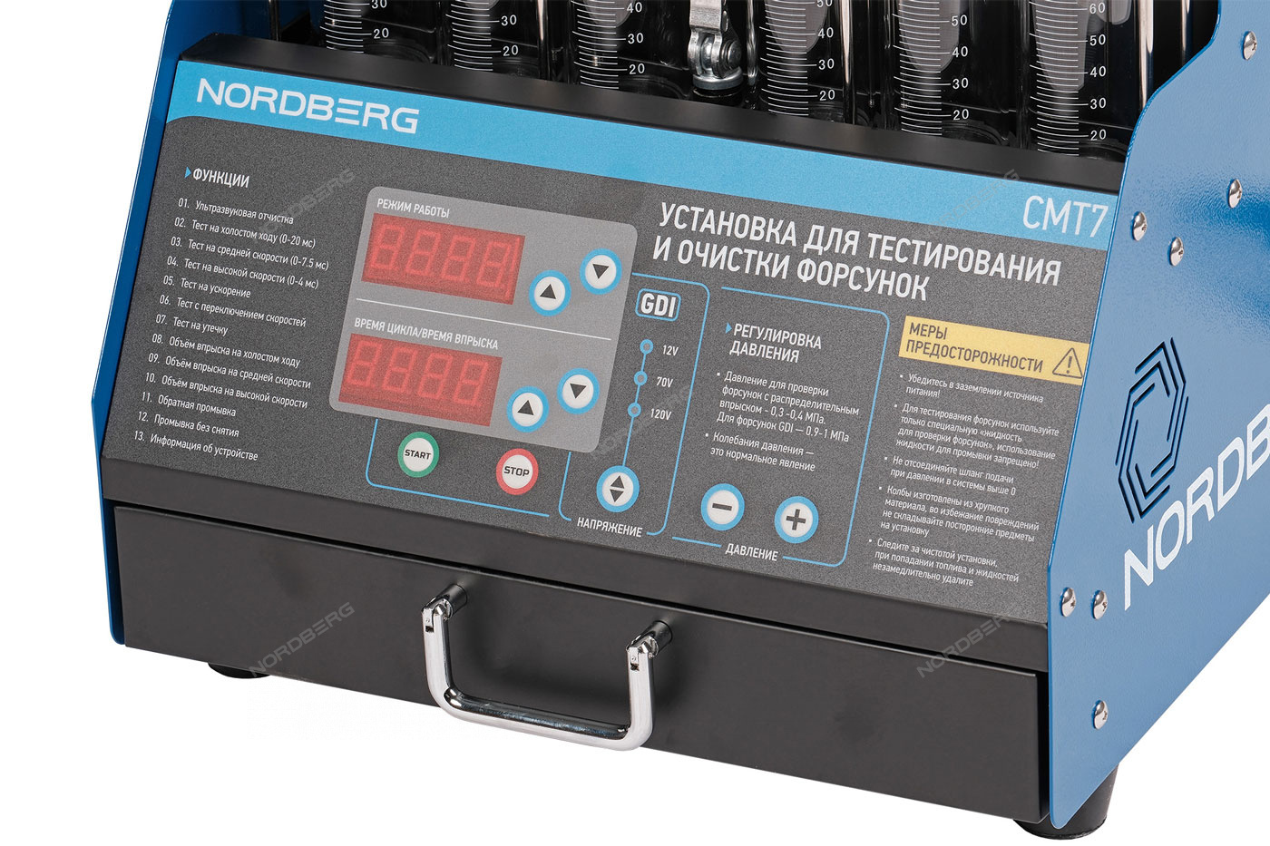 Установка для тестирования и очистки форсунок NORDBERG CMT7 – специальное диагностическое оборудование для обслуживания и ремонта автомобилей с двигателями GDI в автосервисах или СТО.