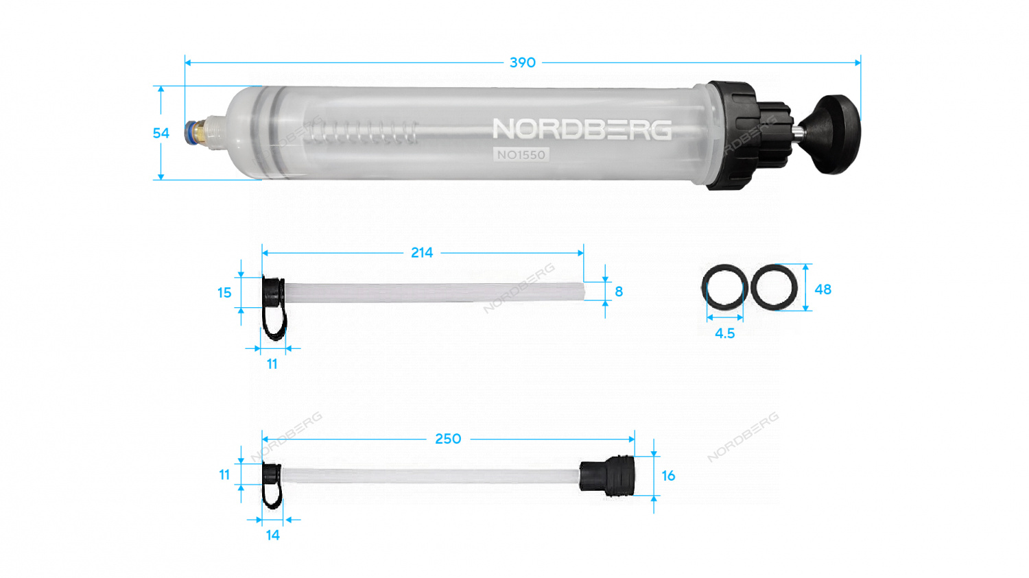 NORDBERG NO1550 — шприц для заливки масла с насадками, 500 мл.
