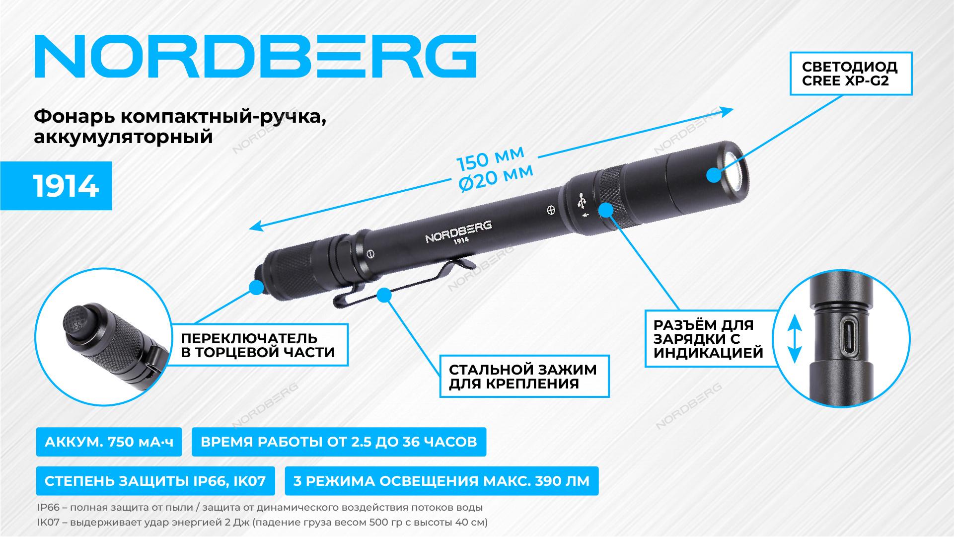 Компактный светодиодный фонарик-ручка NORDBERG 1914 с легкостью повысит комфорт и эффективность работы автомеханика, обеспечивая направленное и яркое освещение.