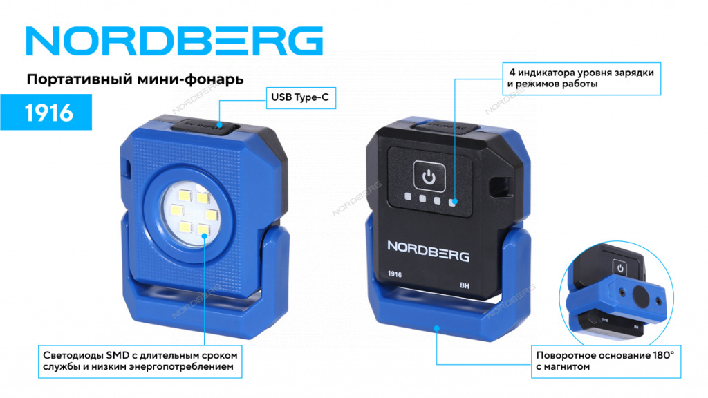 - Магнитное основание освобождает руки для работы;