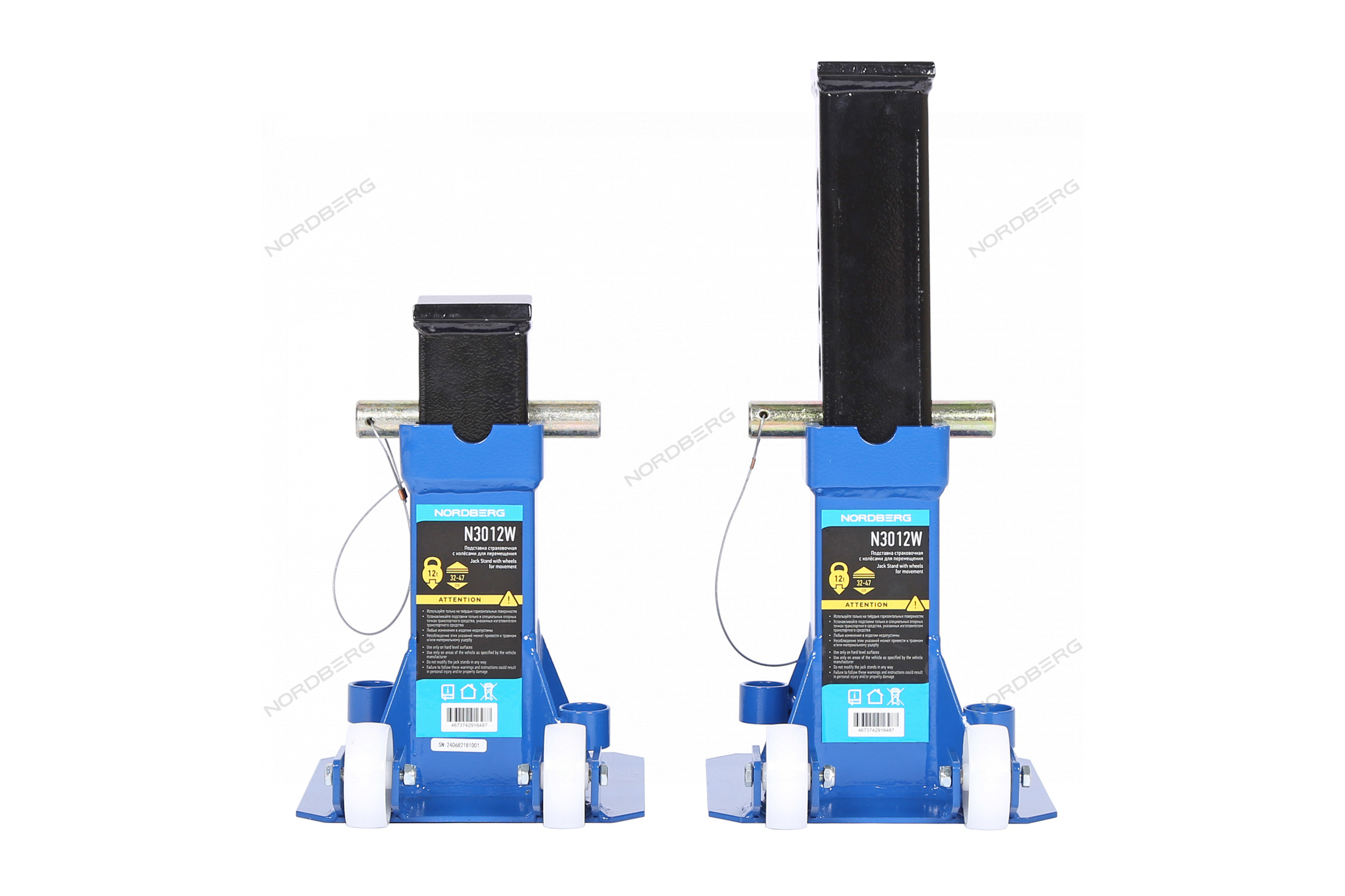 Комплект автомобильных опорных подставок на колесах NORDBERG N3012W – страховочное оборудование для работ с транспортными средствами в автосервисах или СТО.