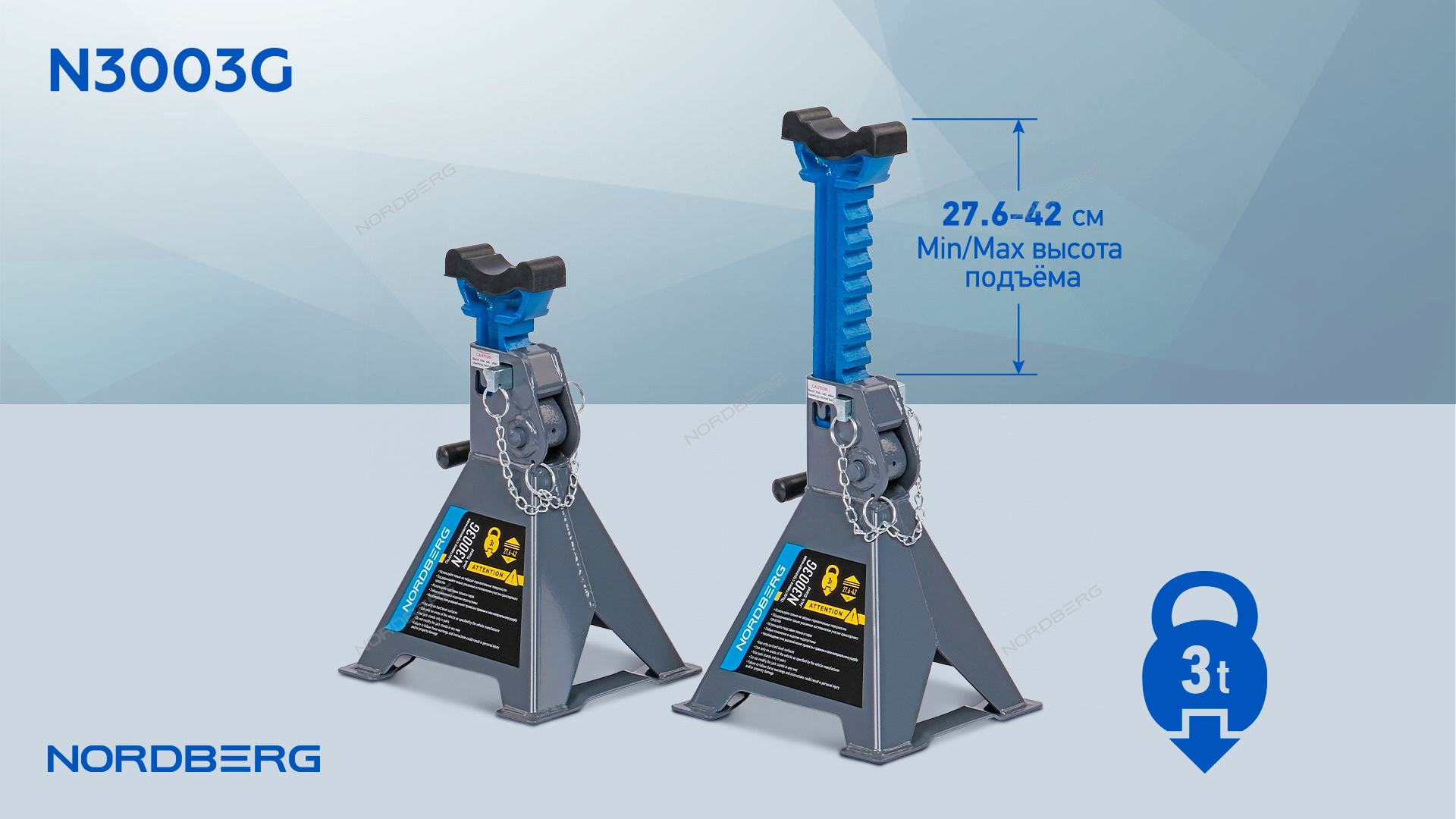 Страховочные опорные подставки NORDBERG N3003G - незаменимый инструмент, который обеспечивает безопасность, удобство и эффективность при проведении ремонтных работ автотранспорта.