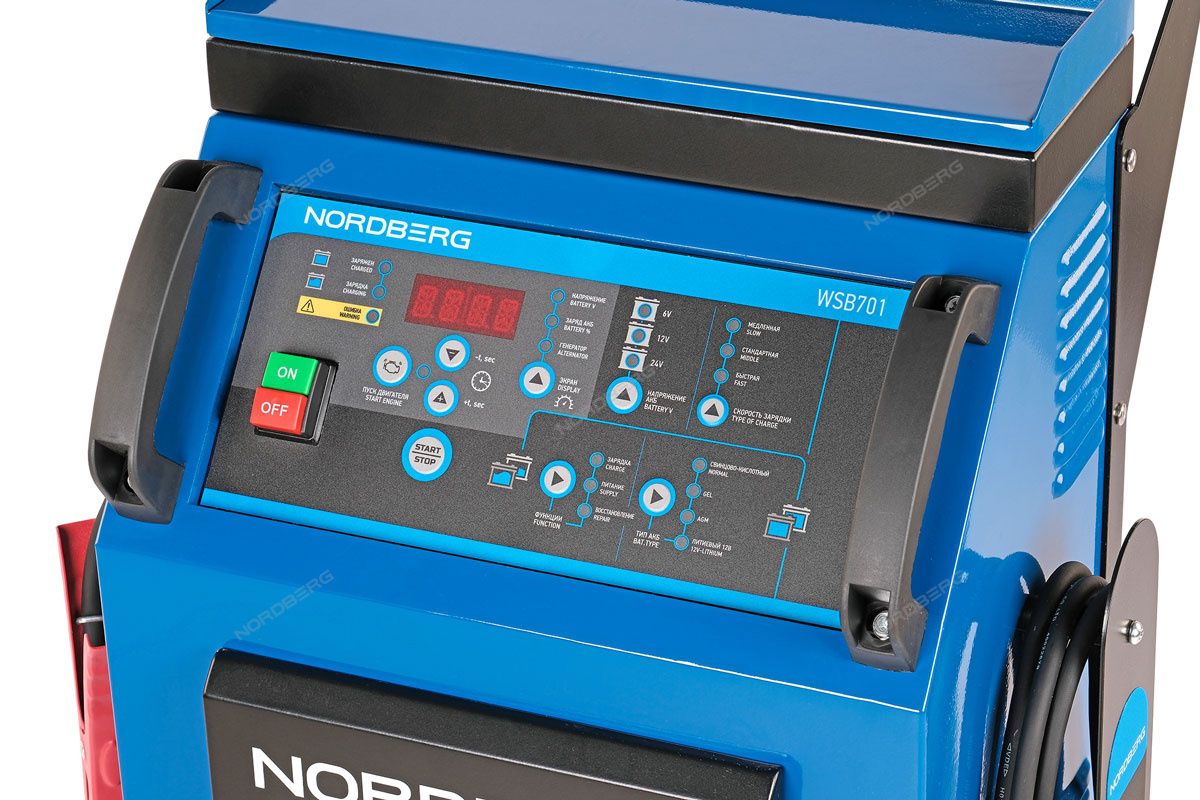 Пуско-зарядное интеллектуальное устройство NORDBERG WSB701 предназначено для обслуживания большого спектра автомобильных аккумуляторов различных транспортных средств в автосервисах и СТО.