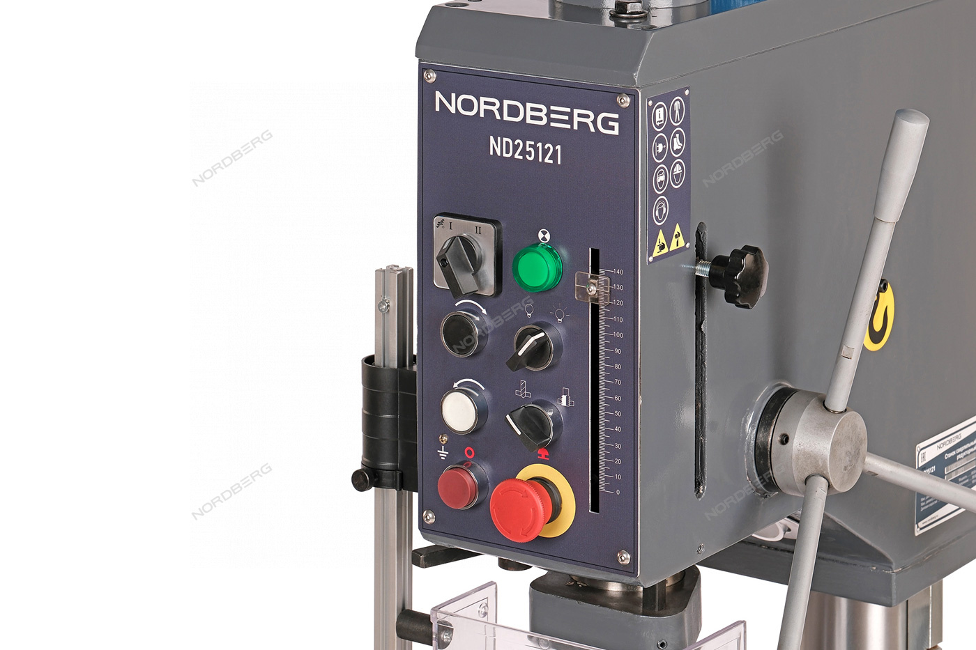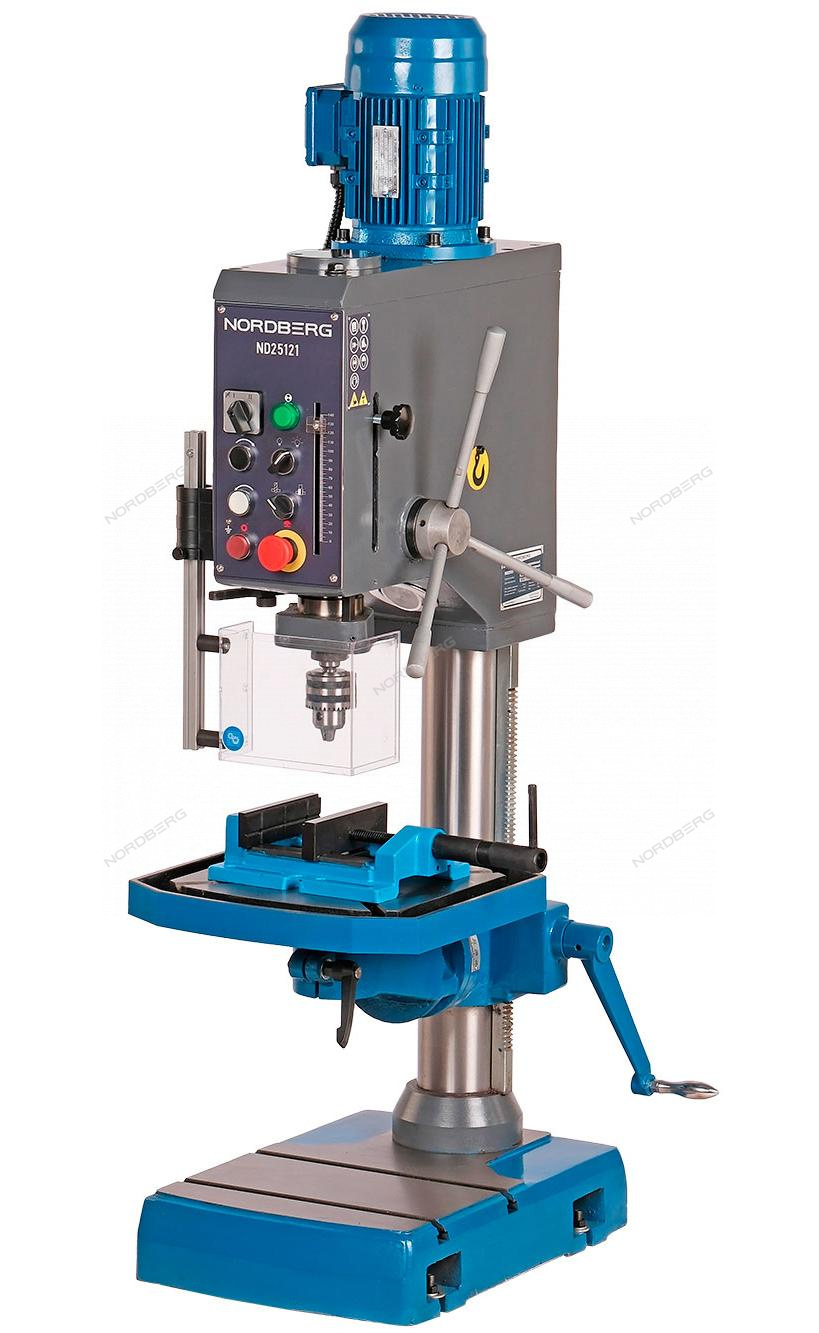 Сверлильный редукторный станок NORDBERG ND25121 – универсальный настольный станок, предназначенный для сверления, нарезания резьбы и других видов механической обработки металлов, полимерных материалов и т. д.