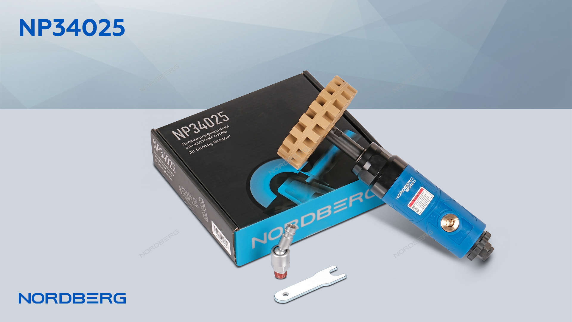 Пневматическая шлифовальная машинка для удаления скотча NORDBERG NP34025 – специализированное оборудование для автосервисов, станций шиномонтажа и автотранспортных предприятий.