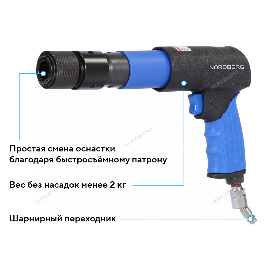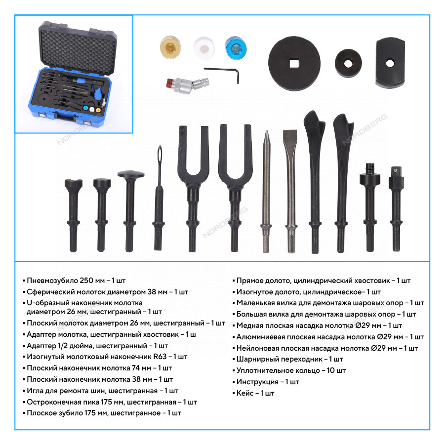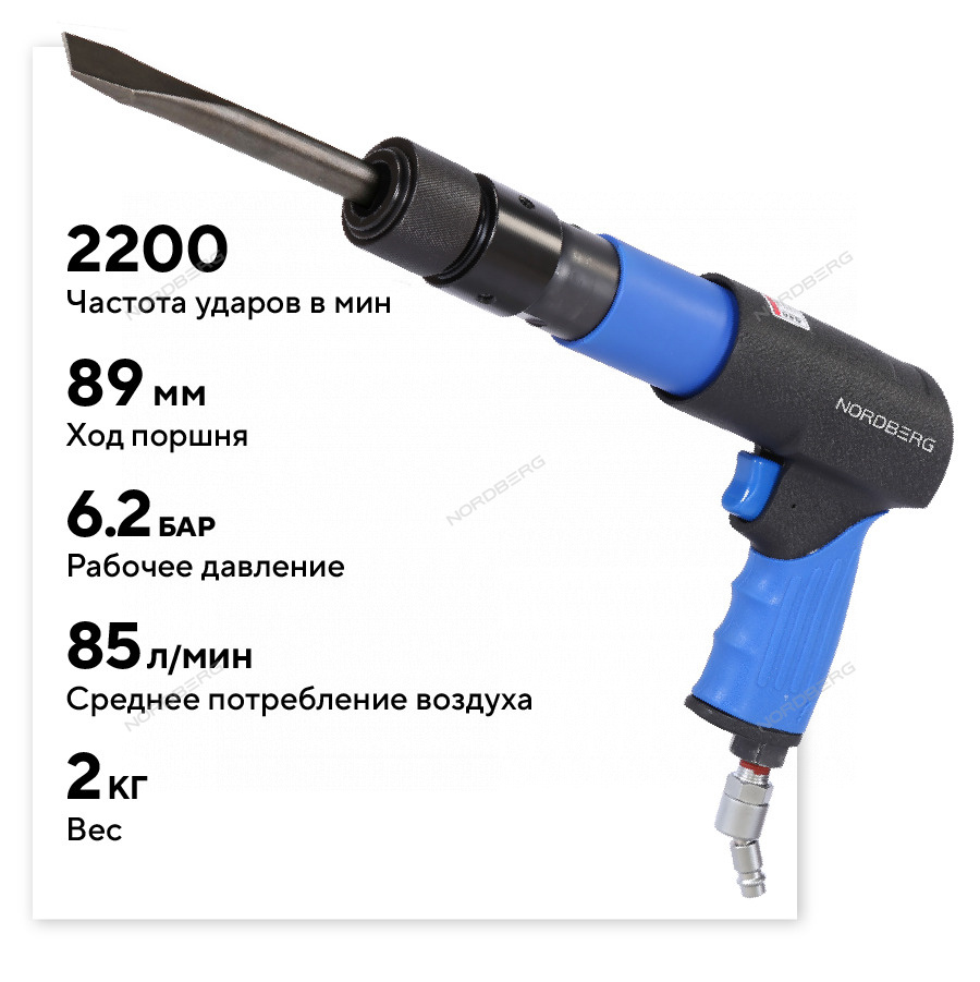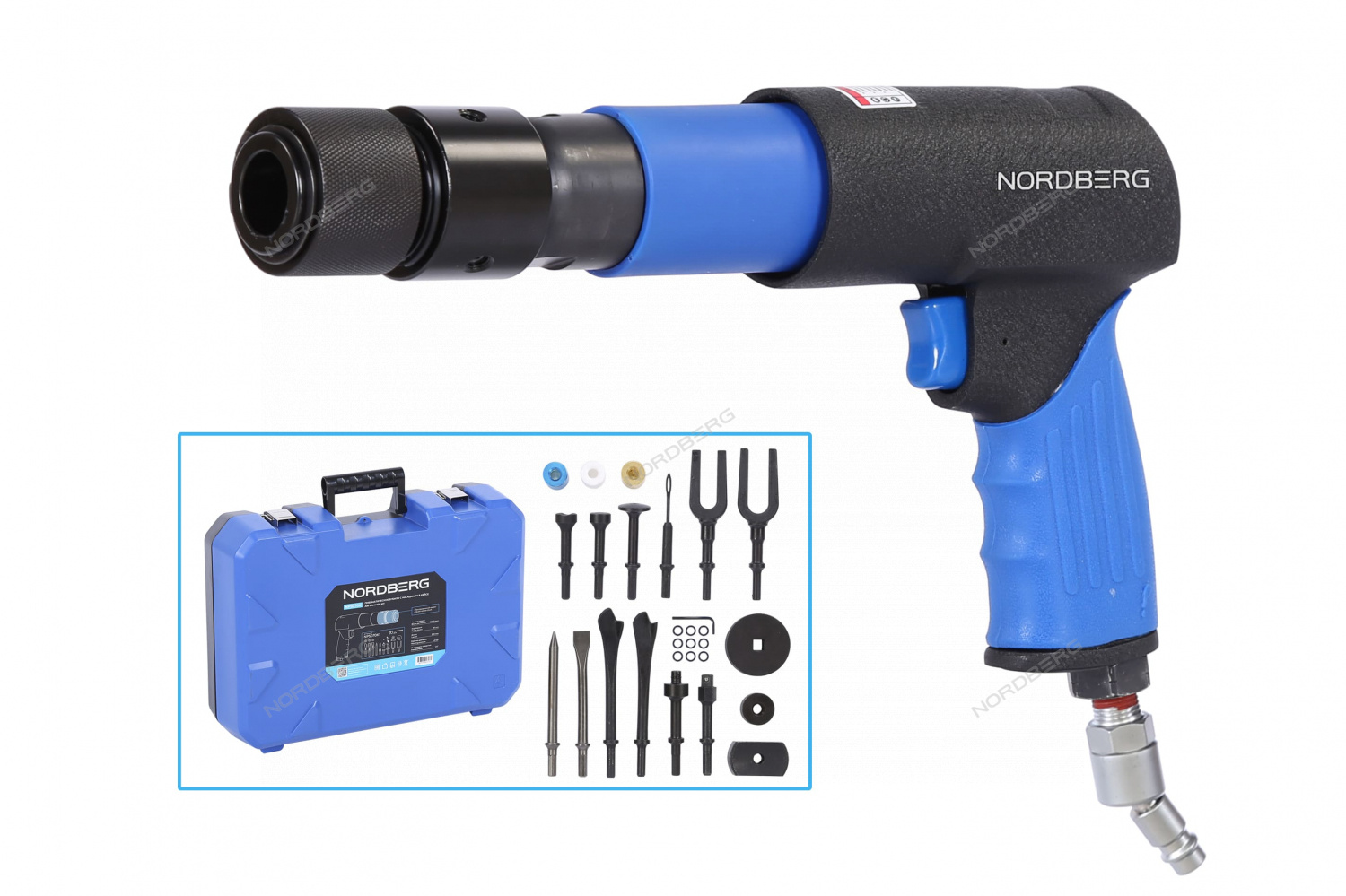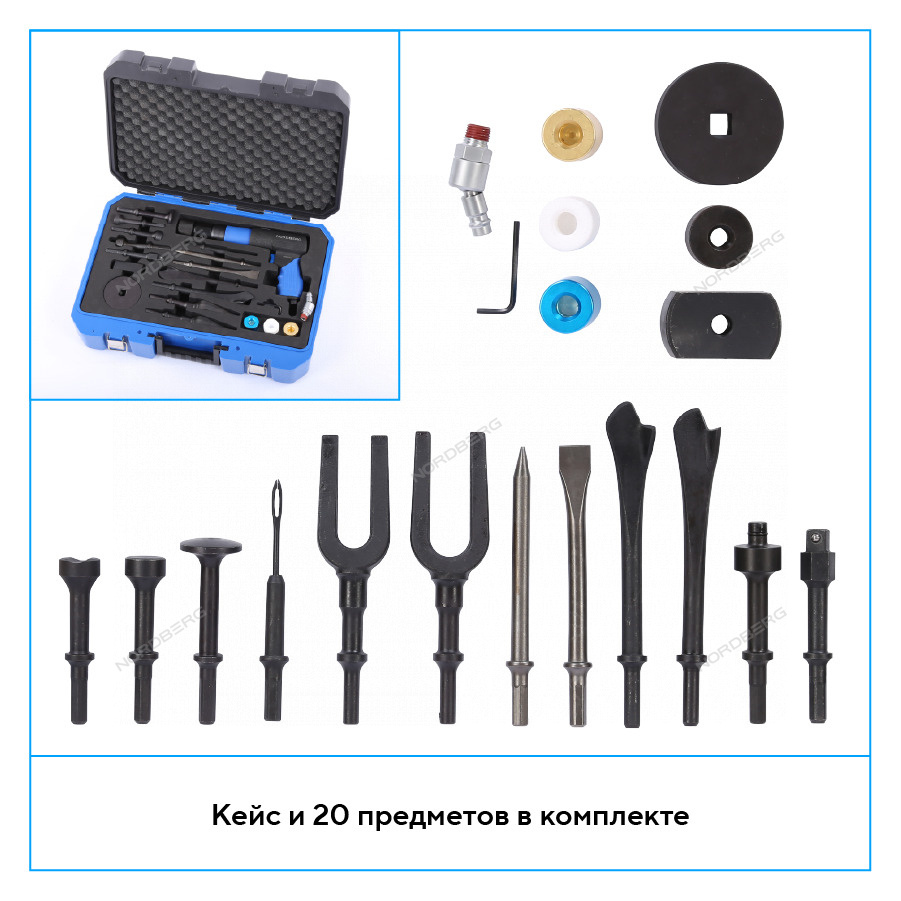 NORDBERG NP5070K1 — профессиональное пневмозубило с расширенной комплектацией для кузовного ремонта и демонтажных работ.