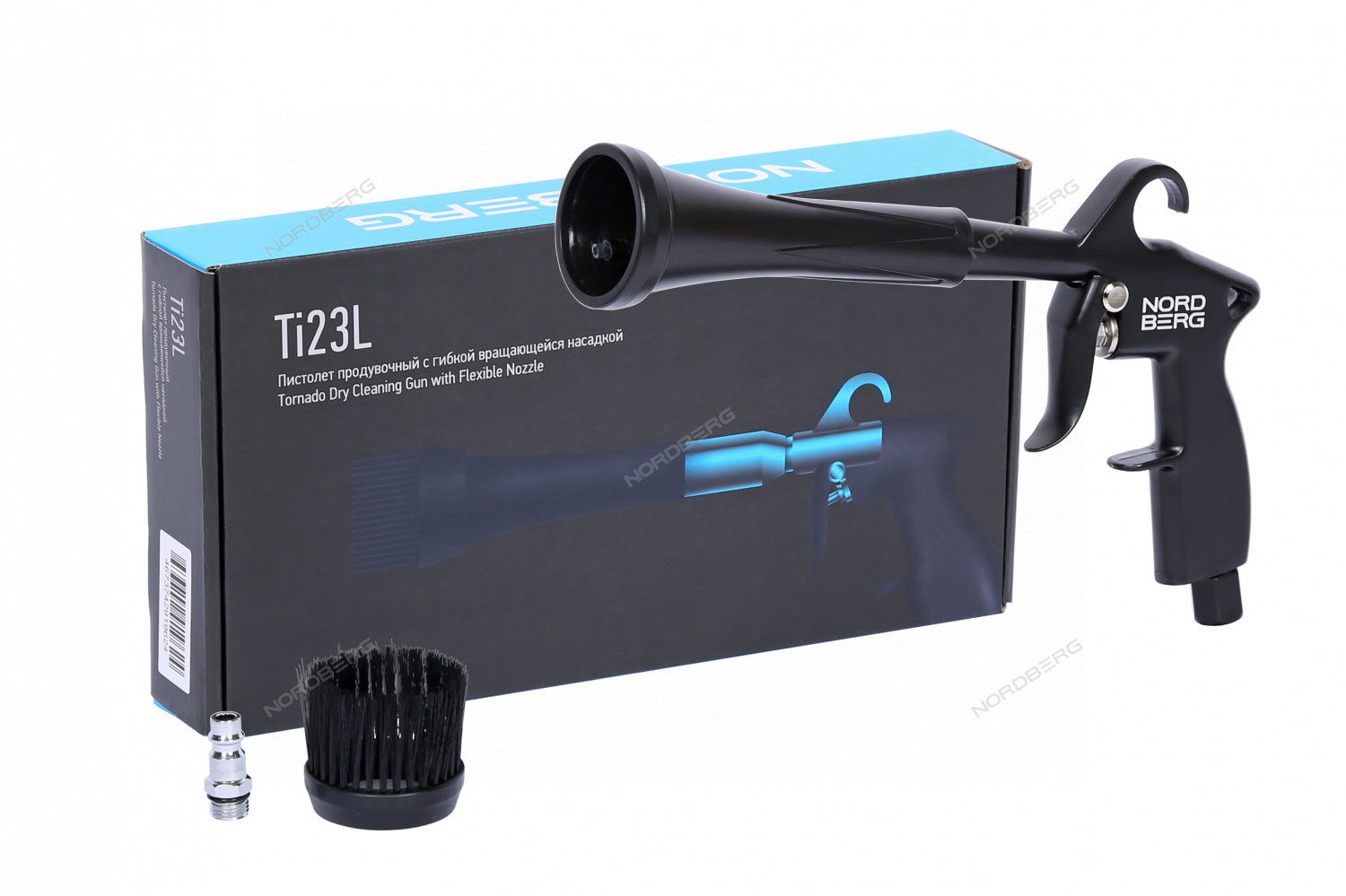 Пистолет продувочный NORDBERG Ti23L – универсальный инструмент, производящий очистку поверхностей автомобилей в детейлинг-студиях, автомойках, химчистках.
