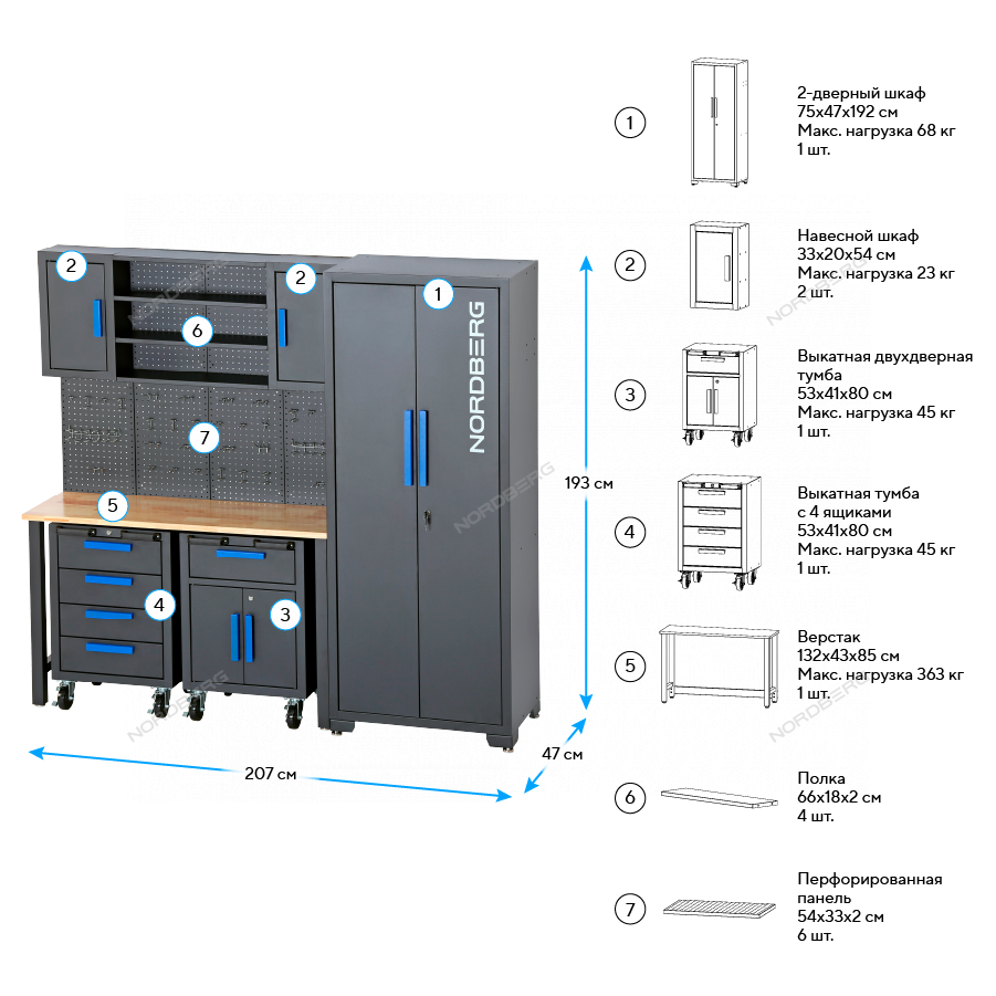 NORDBERG TT117 — универсальный модульный набор мебели для профессиональных автомастерских.