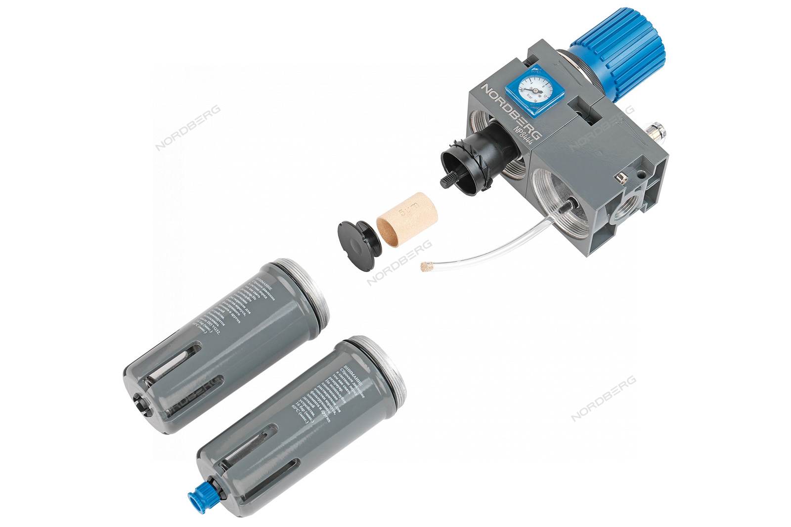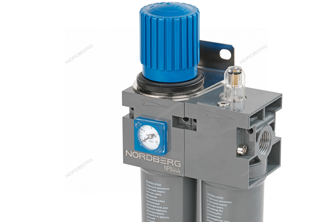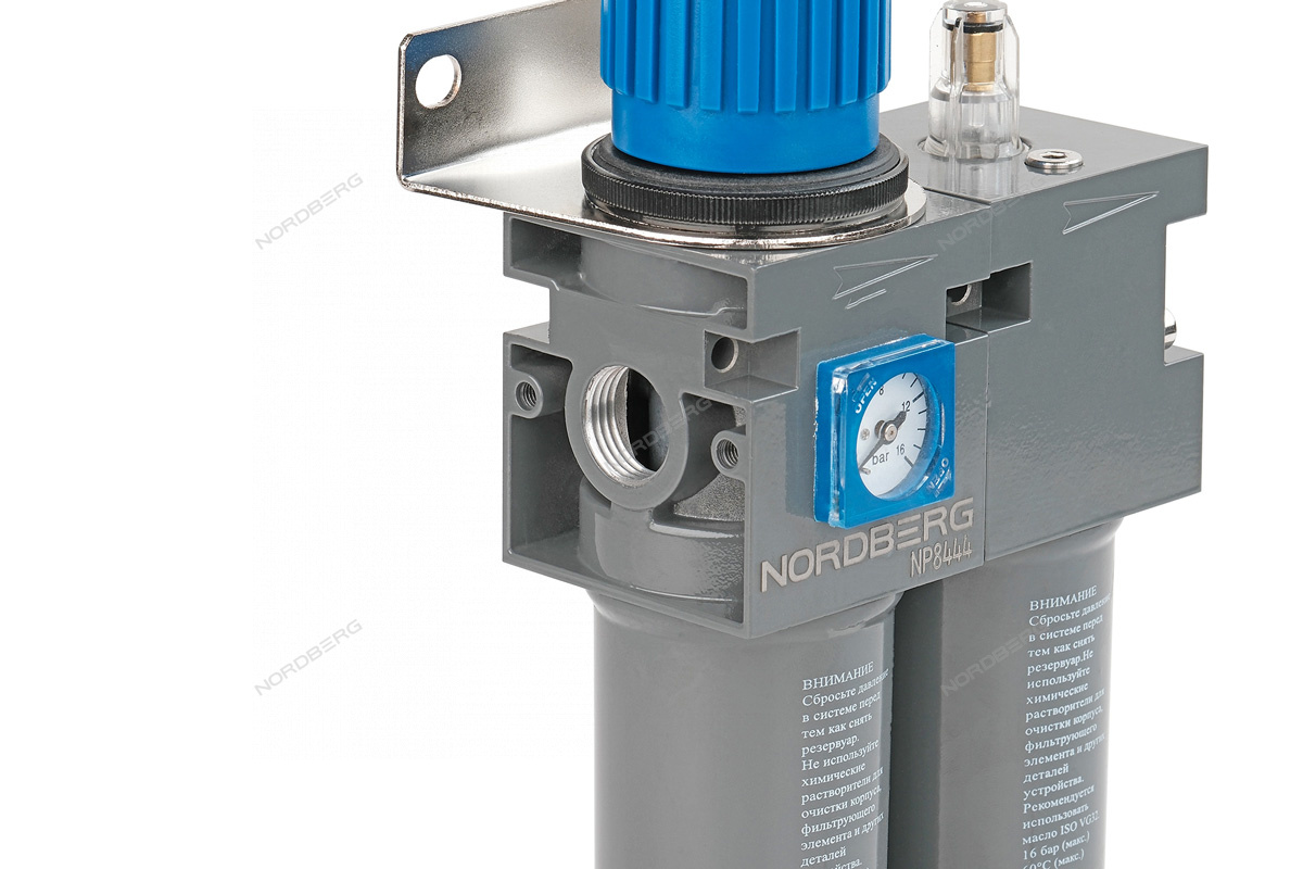 Фильтр с редуктором и лубрикатором NORDBERG NP8444 сможет максимально качественно, согласно своих технических характеристик очистить сжатый воздух от частиц пыли, отрегулировать давление и смазать сжатый воздух для его потребителей.
