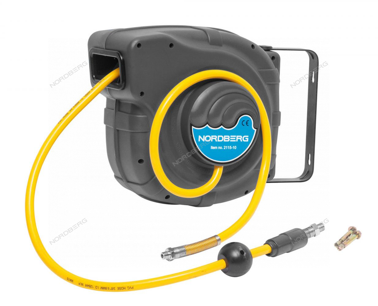 Шланг воздушный с автоматической катушкой NORDBERG 2115-10G используется для подачи воздуха от компрессора к пневмоинструменту.