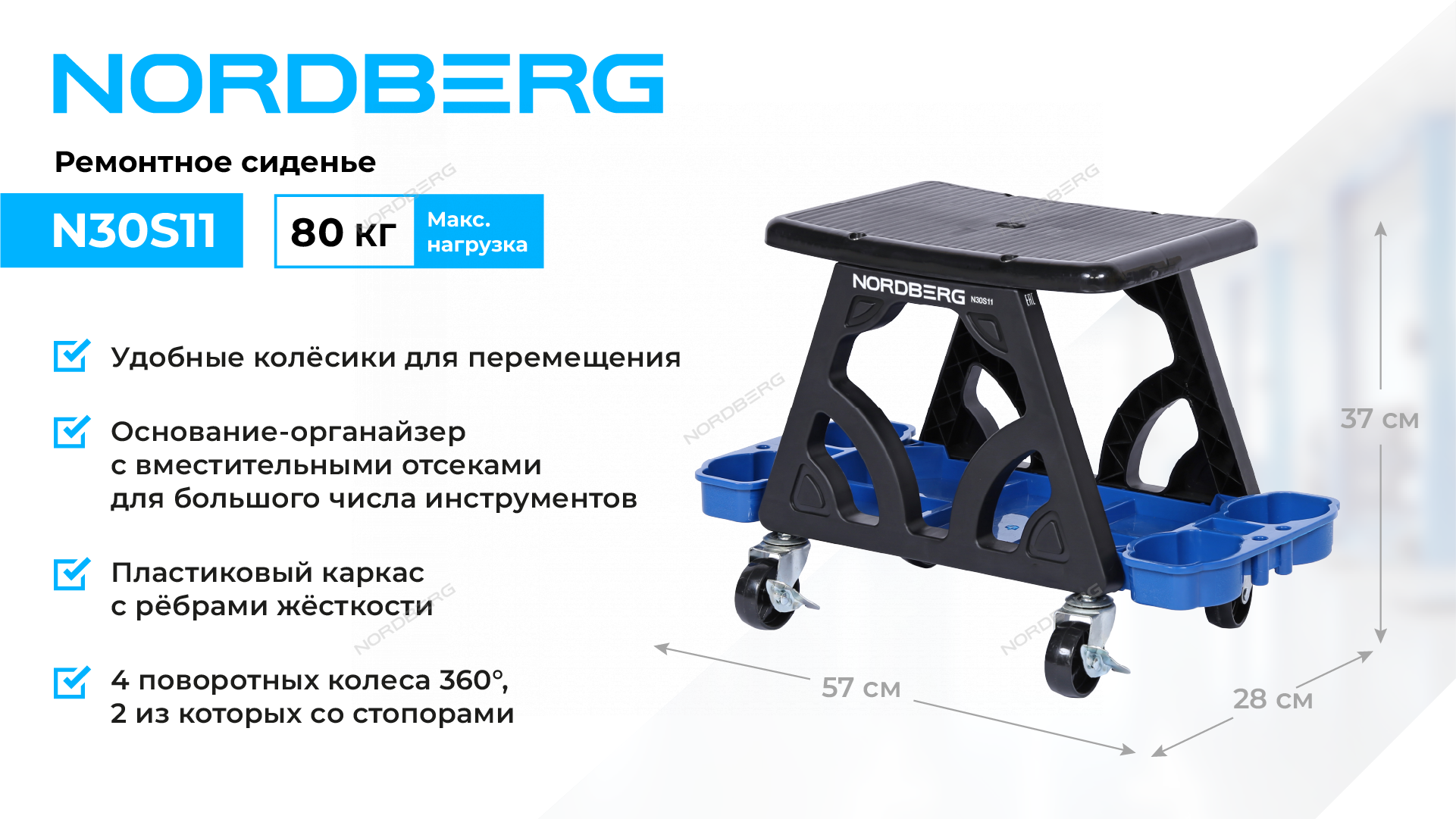 Ремонтное сиденье NORDBERG N30S11 – отличный выбор для организации удобной и эффективной работы.