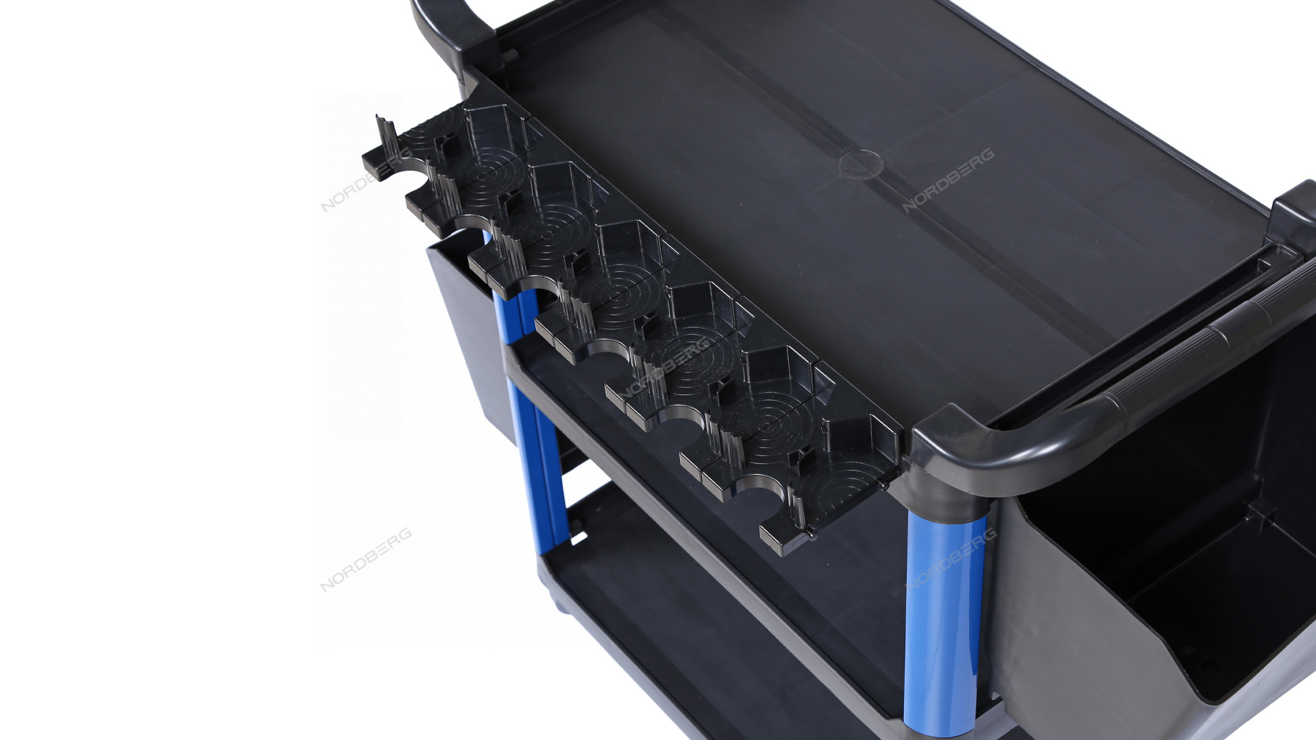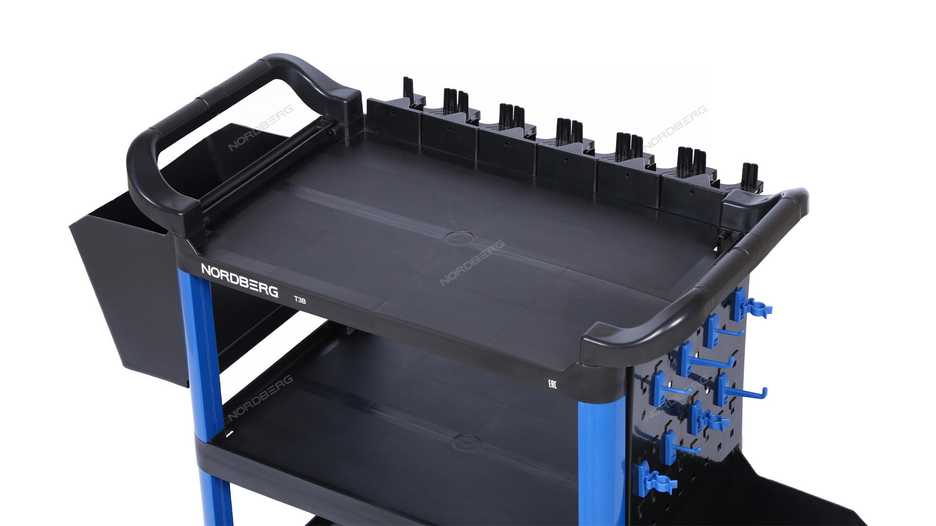 ТЕЛЕЖКА T3 с пластиковыми полками Nordberg T3 для компактного размещения и доставки необходимого инструмента непосредственно к месту проведения работ.