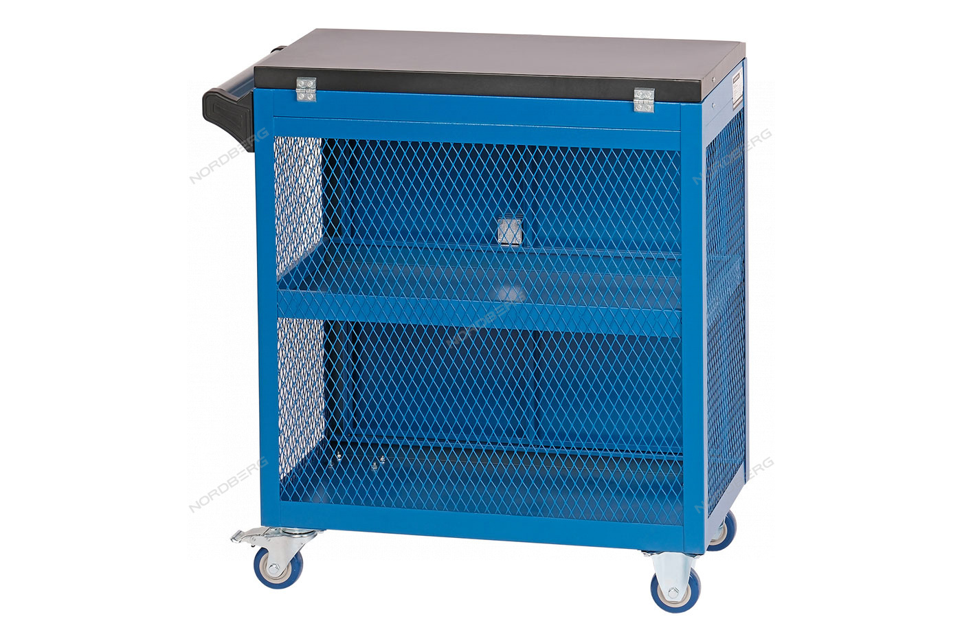 Рукоятка в верхней части и четыре поворотных колеса, два из которых со стопорами, обеспечивают легкое и простое перемещение тележки. Тележка организует порядок на рабочем месте, позволяя оптимально разместить необходимые инструменты.