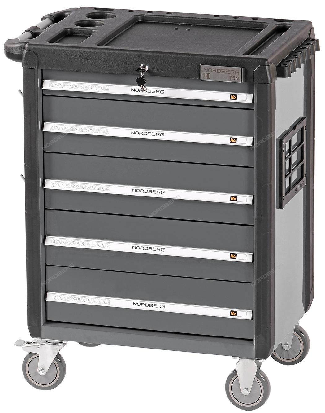 Тележка инструментальная профессиональная серая c пятью полками NORDBERG T5N