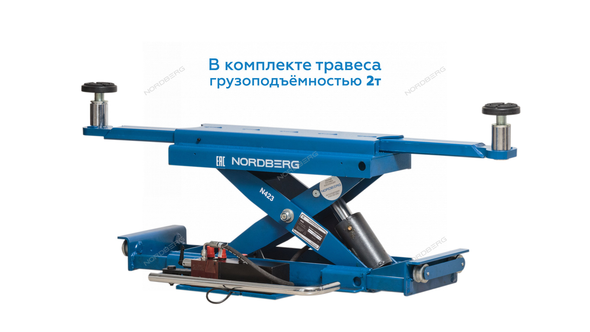 Подъемник 4-стоечный 4.5 т, c ручной траверсой 2 т N423, 380 В, синий NORDBERG 4445J_MB(M), идеальное решение для ремонта легковых авто, внедорожников, минивэнов и легких грузовиков