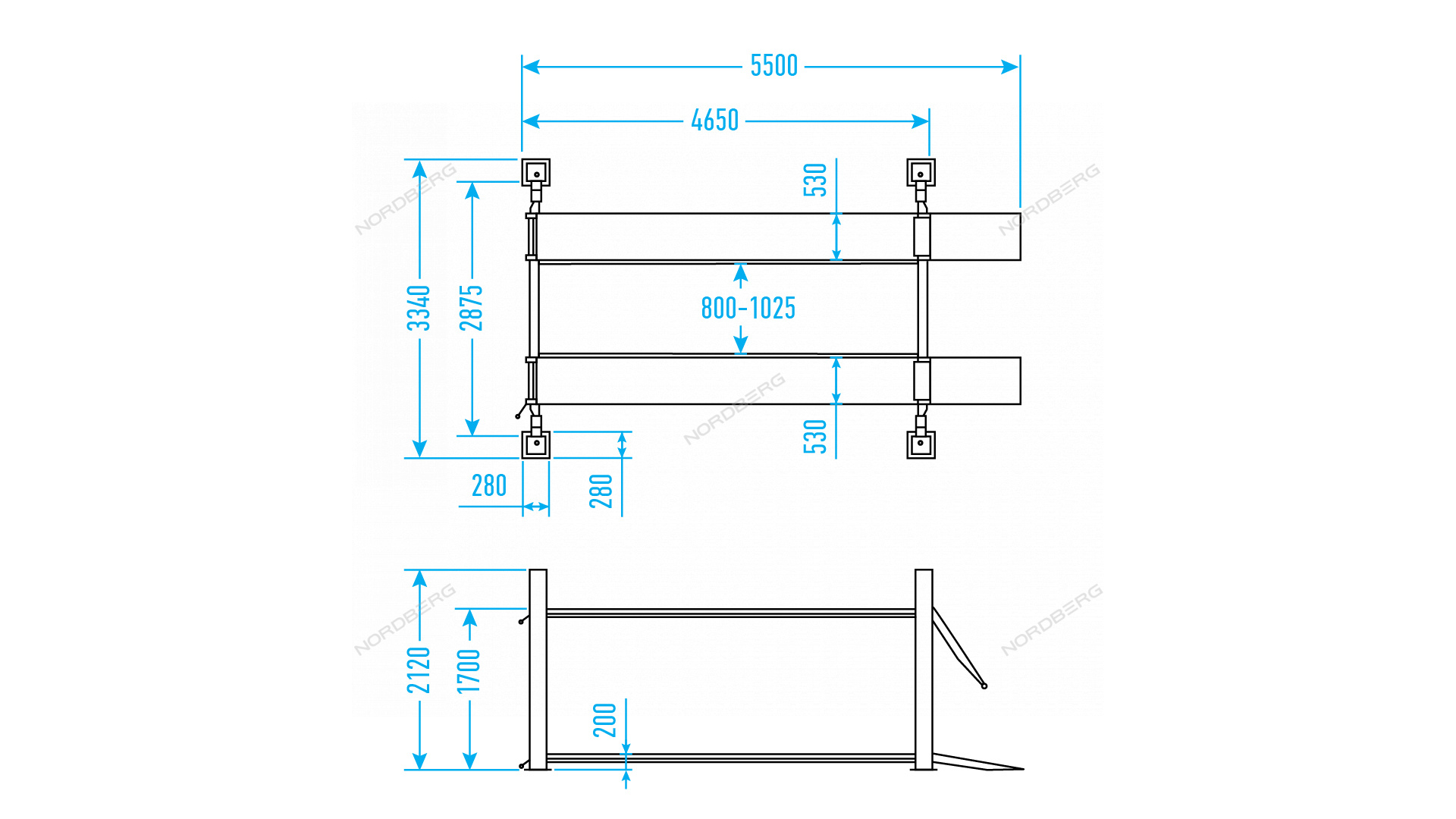 - Регулируемое расстояние между платформами — 800, 900 или 1025 мм, что обеспечивает универсальность и позволяет точно подстроить подъёмник под различные типы автомобилей, от седанов до лёгких грузовиков;