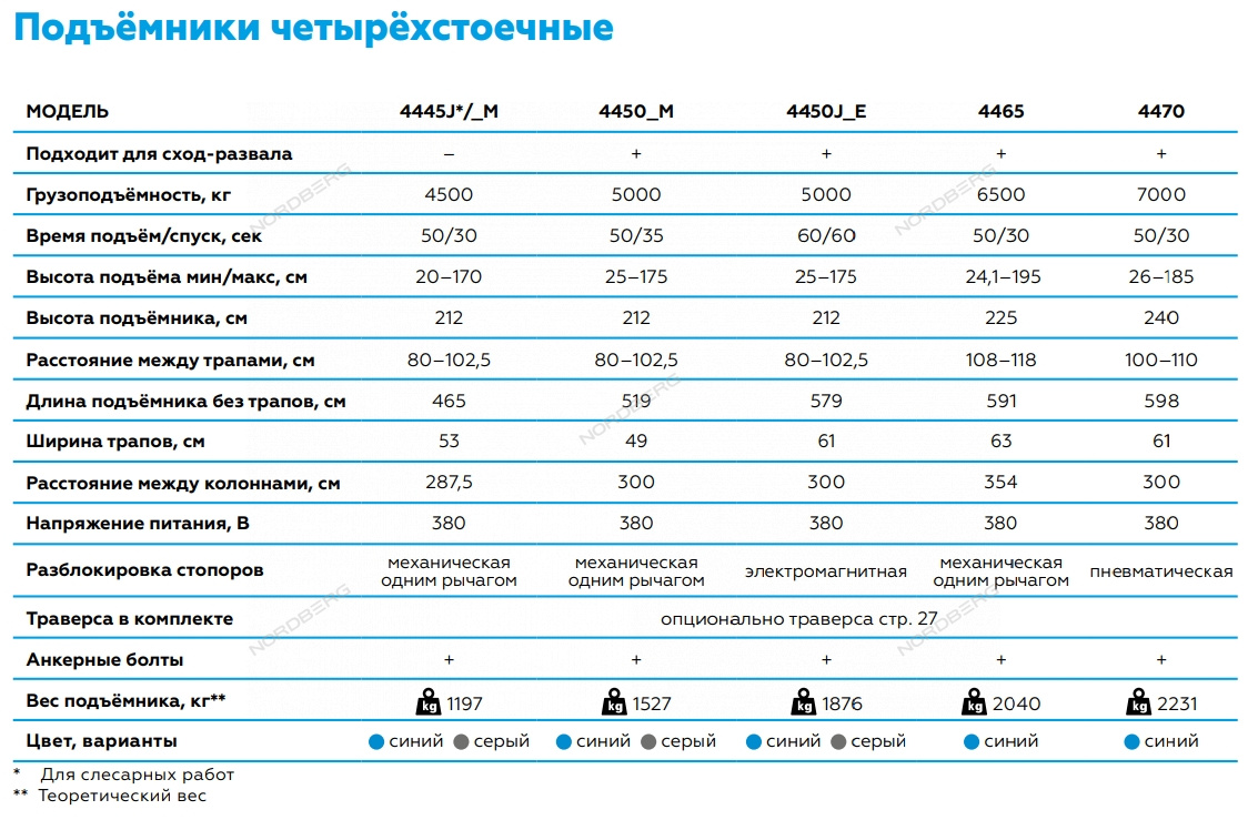 NORDBERG 4445J_MB — это профессиональный четырёхстоечный подъёмник, сочетающий высокую грузоподъёмность и безопасность. Надёжное решение для автосервисов, где требуется качественное и эффективное обслуживание ходовой части и подвески.