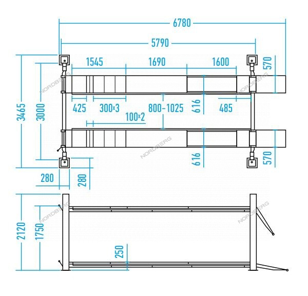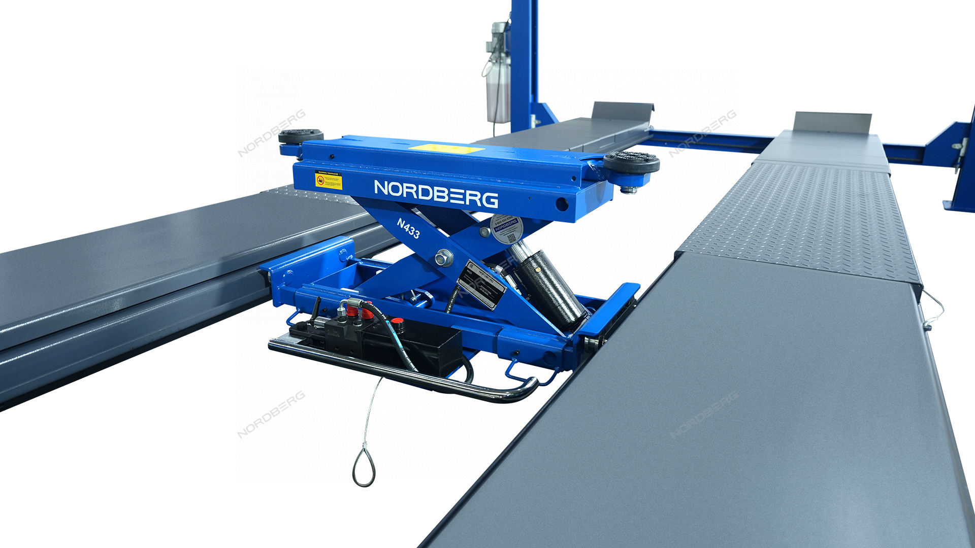 NORDBERG 4450J_EB(M) — четырёхстоечный подъёмник грузоподъёмностью 5 тонн для сход-развала с траверсой в комплекте.