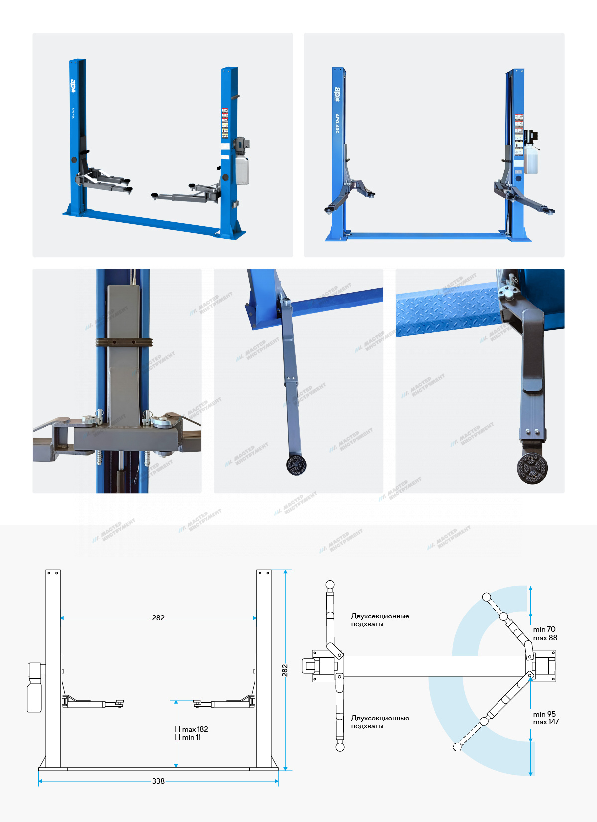 Копия Подъемник двухстоечный 4 т, нижняя синхронизация, H=2,8 м, 220 В, синий APO-40C_220
