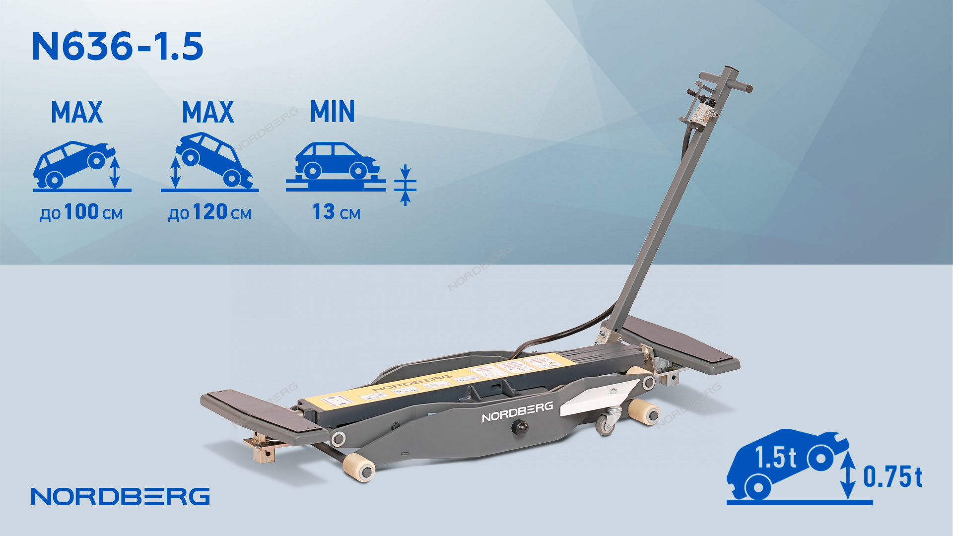 Ножничный подкатной пневмоподъемник NORDBERG N636-1,5 позволит максимально эффективно и быстро выполнить широкий спектр работ по детейлингу, шиномонтажу, диагностическому осмотру автомобилей, кузовному ремонту и пр.