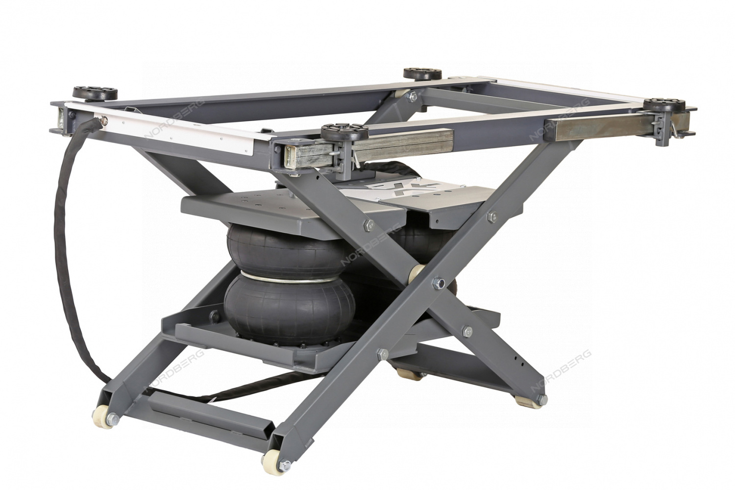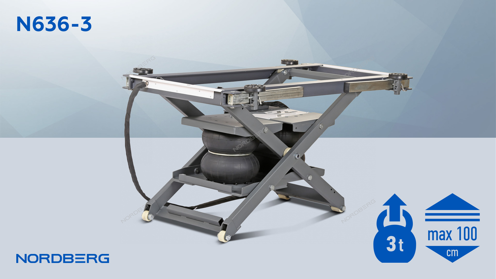 Ножничный мобильный подъемник NORDBERG N636-3 – компактное и удобное подъемное оборудование для подъема автомобилей до 3 тонн, предназначенное для профессионального и бытового использования в автосервисах, студиях детейлинга, шиномонтажных мастерских, гаражах и на автосервисных предприятиях.