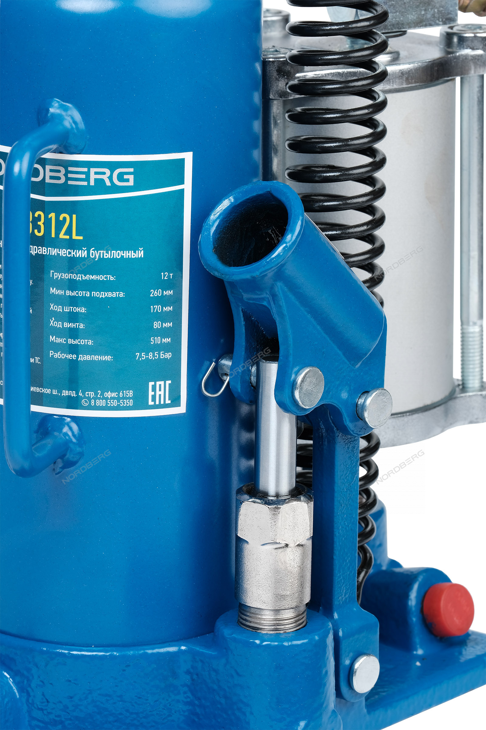 Домкрат бутылочный NORDBERG N3312L – профессиональное грузоподъемное оборудование для сервисных работ в автотранспортных предприятиях, автомастерских и СТО.