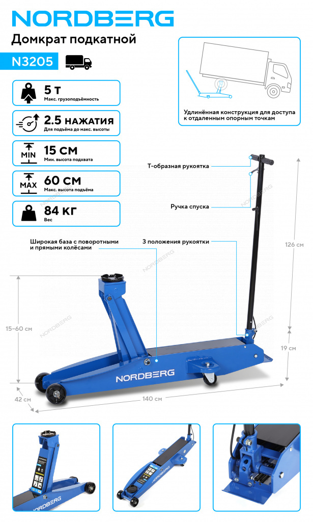 NORDBERG N3205 — мощный, надёжный и безопасный домкрат, созданный для профессионалов, которые ценят высокую производительность и долговечность оборудования.