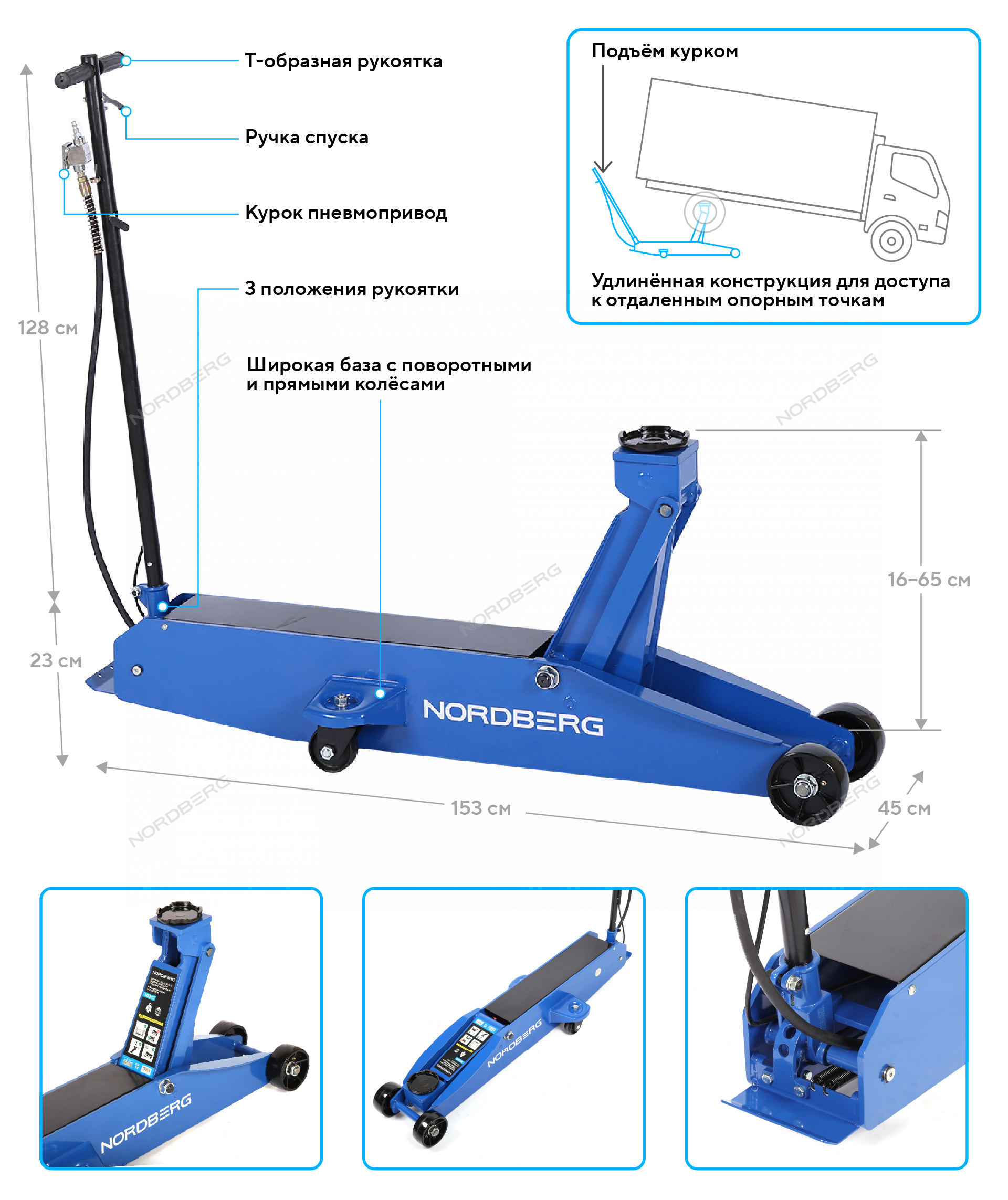 NORDBERG N32011 — это мощный и надёжный домкрат с пневматической системной, повышающий скорость и комфорт в работе с автотранспортом.