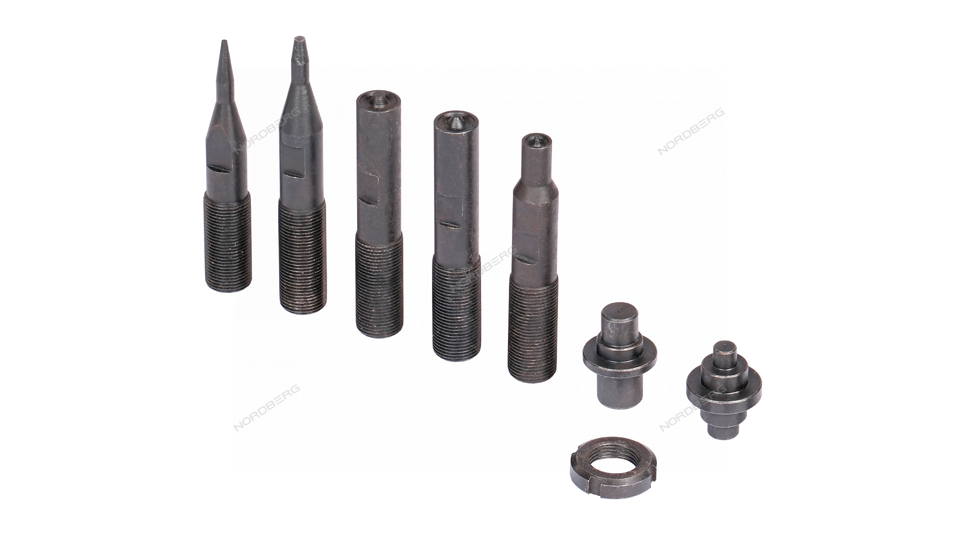 В комплекте прилагается полный набор пуансонов NR10PK для работы с разными рабочими диаметрами заклепок - до 12 мм.