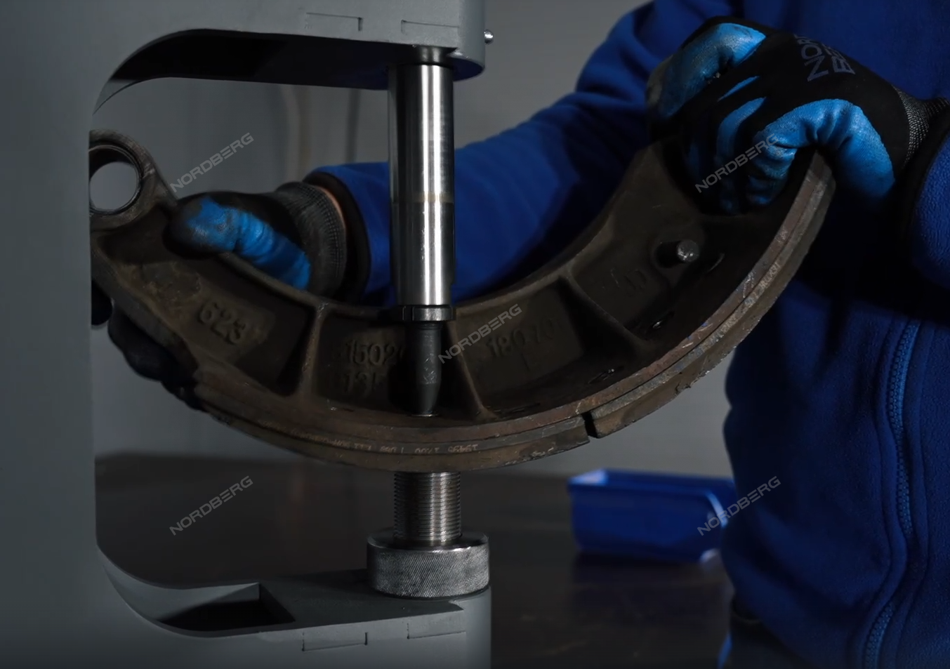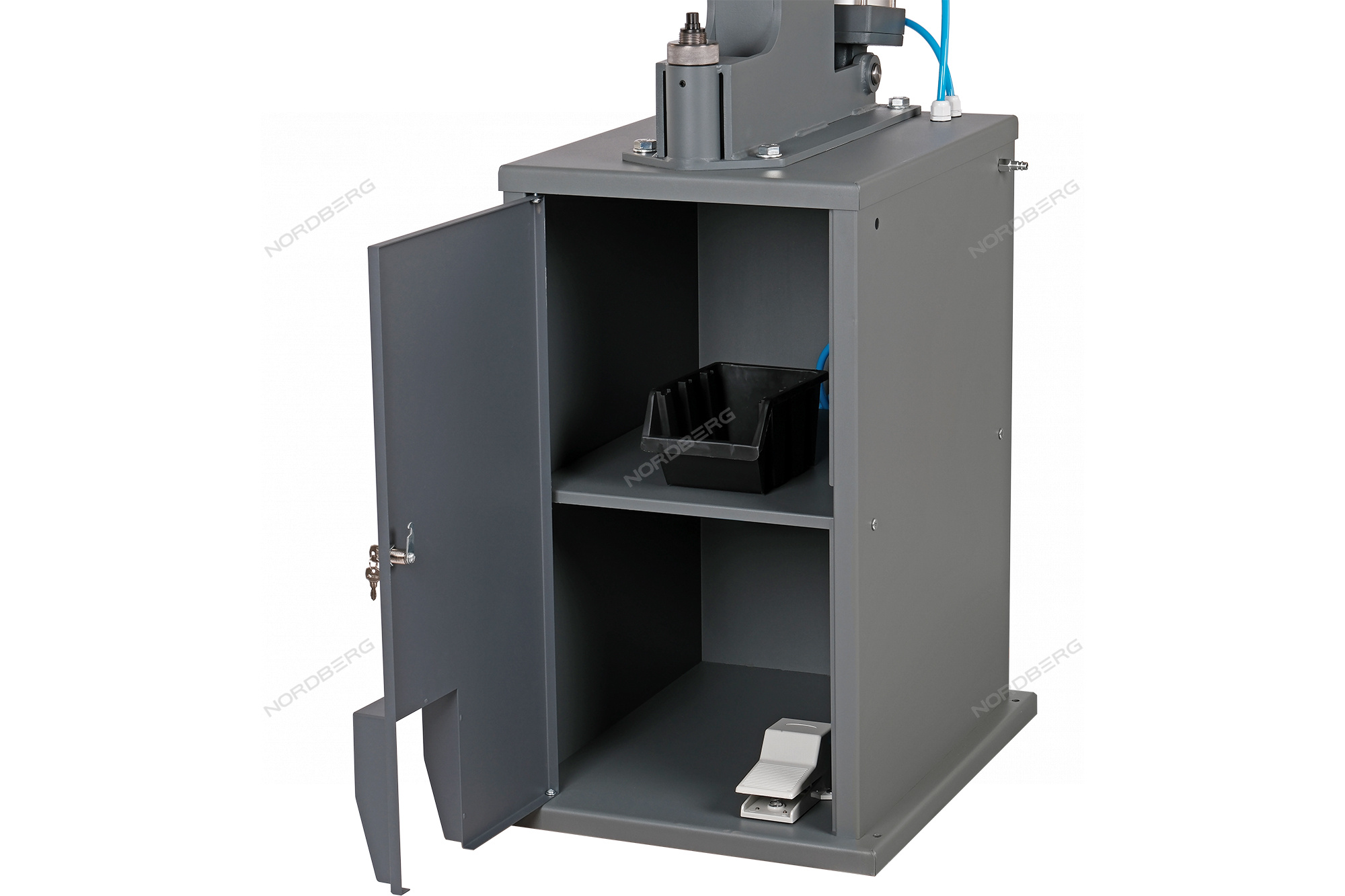 Эксклюзивная разработка компании NORDBERG – комплект, состоящий из пневматического станка для заклепки тормозных колодок и специальной тумбы для установки станка NORDBERG NR8TM.