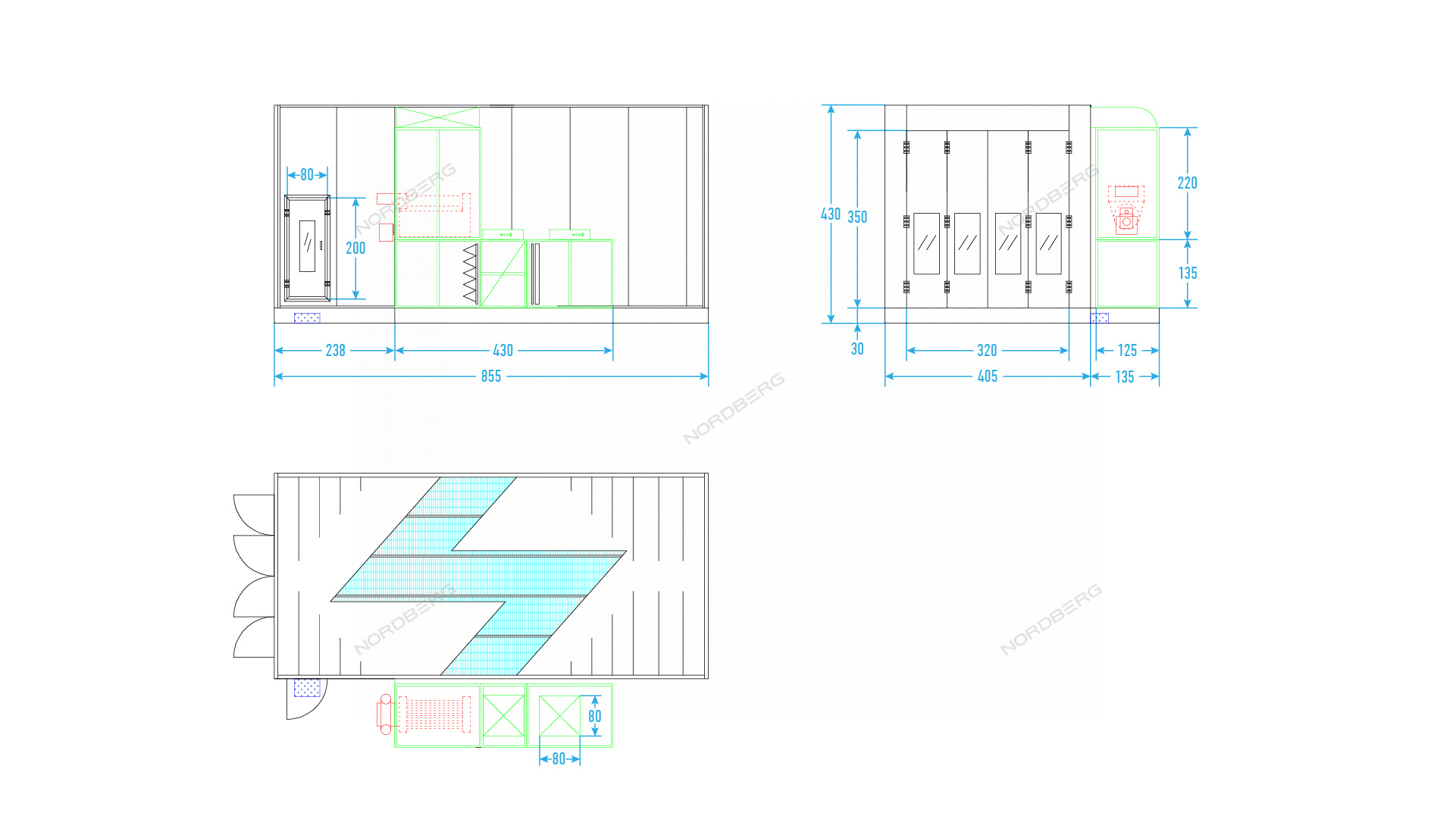- Прочная конструкция: кабина изготовлена из сэндвич-панелей с усиленными рёбрами жёсткости, металлическое покрытие толщиной 0,6 мм и внутренним слоем пенополистирола. Это продлевает срок службы и предотвращает деформацию панелей из-за давления воздуха.