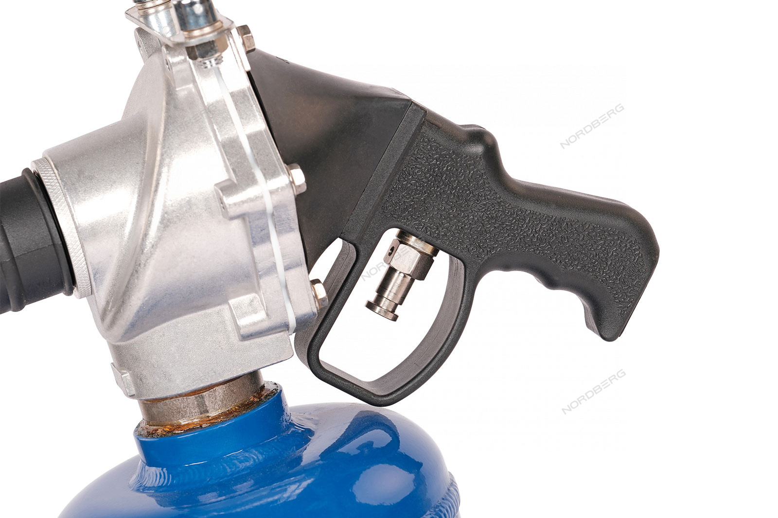 - Удобная рукоятка со стартовой кнопкой и автоматический выпускной клапан обеспечивают безопасность удерживания изделия и быстрый выход большого объема сжатого воздуха.
