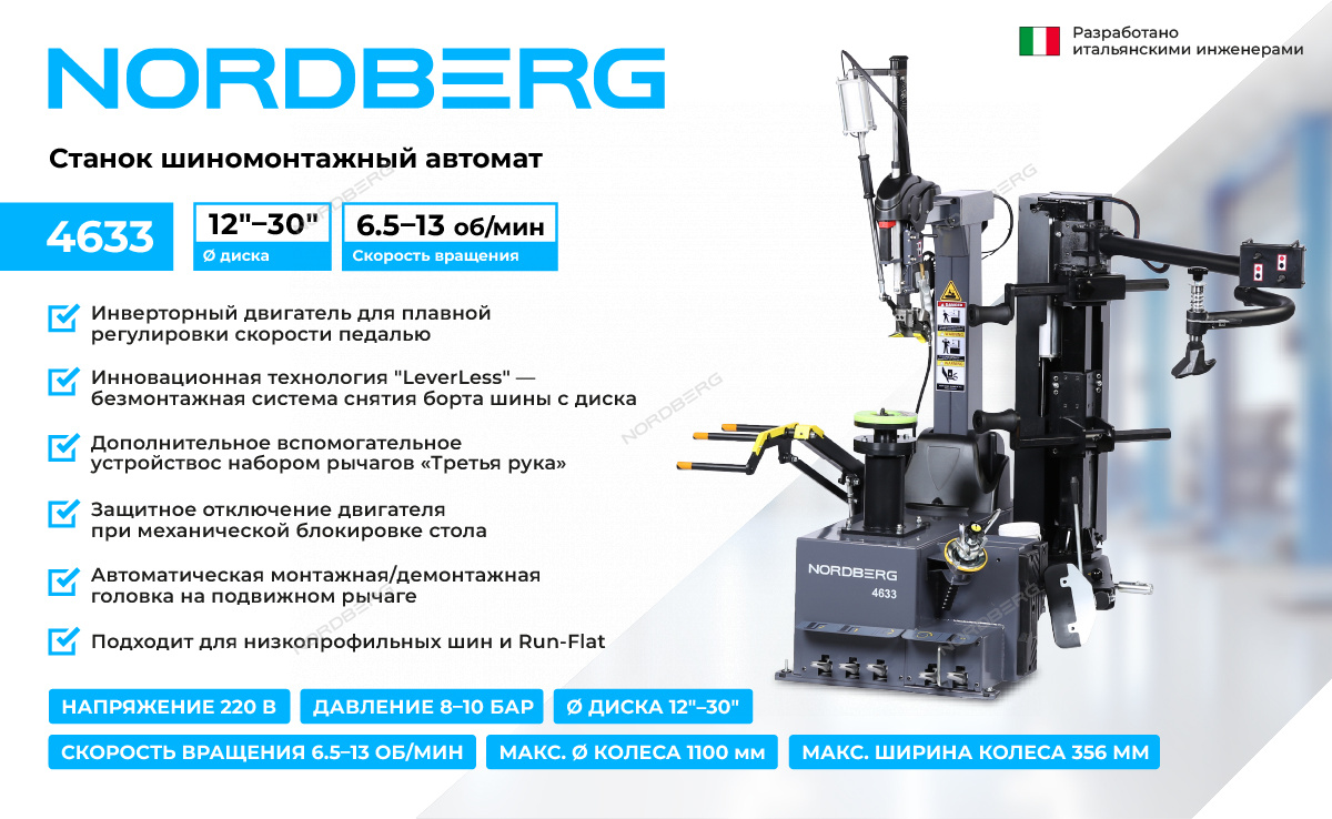 Шиномонтажный автоматический станок NORDBERG 4633 - профессиональное оборудование для шиномонтажных мастерских, автосервисов, СТО.