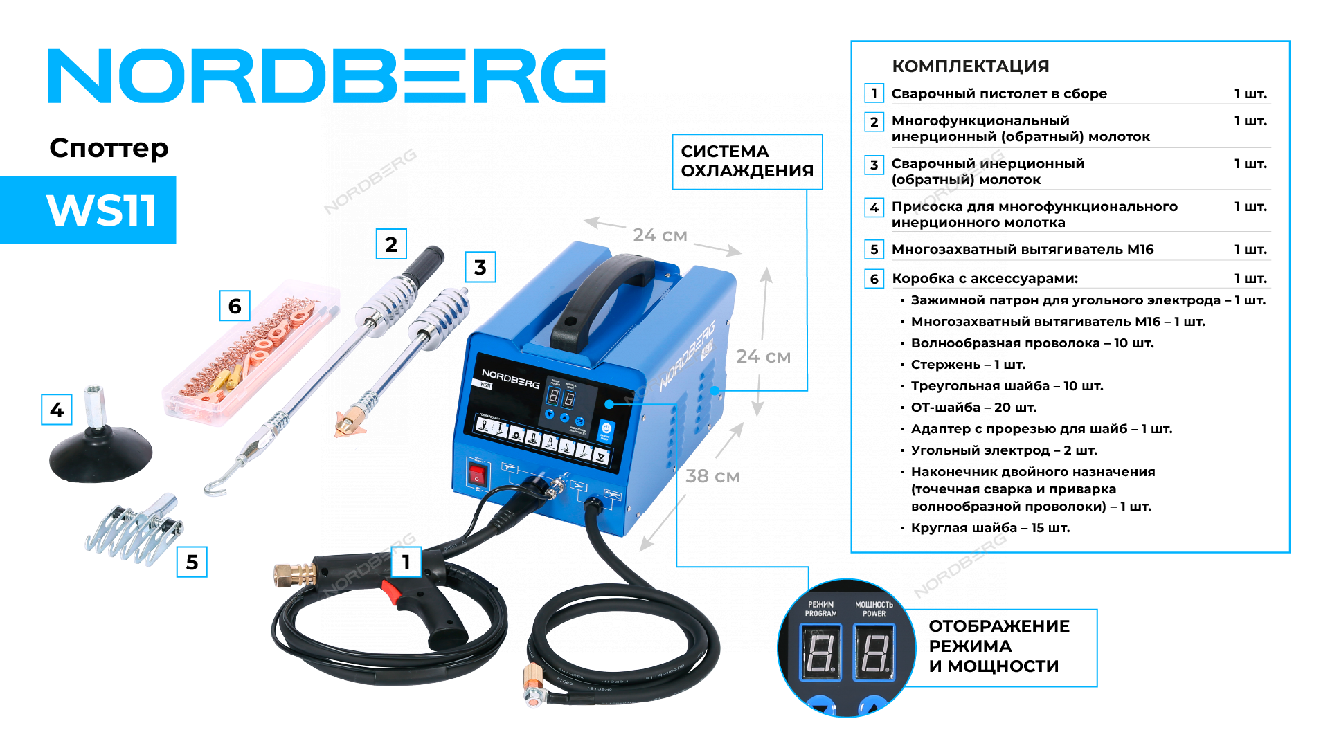 Точечный сварочный аппарат NORDBERG WS11 – высококачественное оборудование для выполнения большинства операций в автосервисном кузовном ремонте.